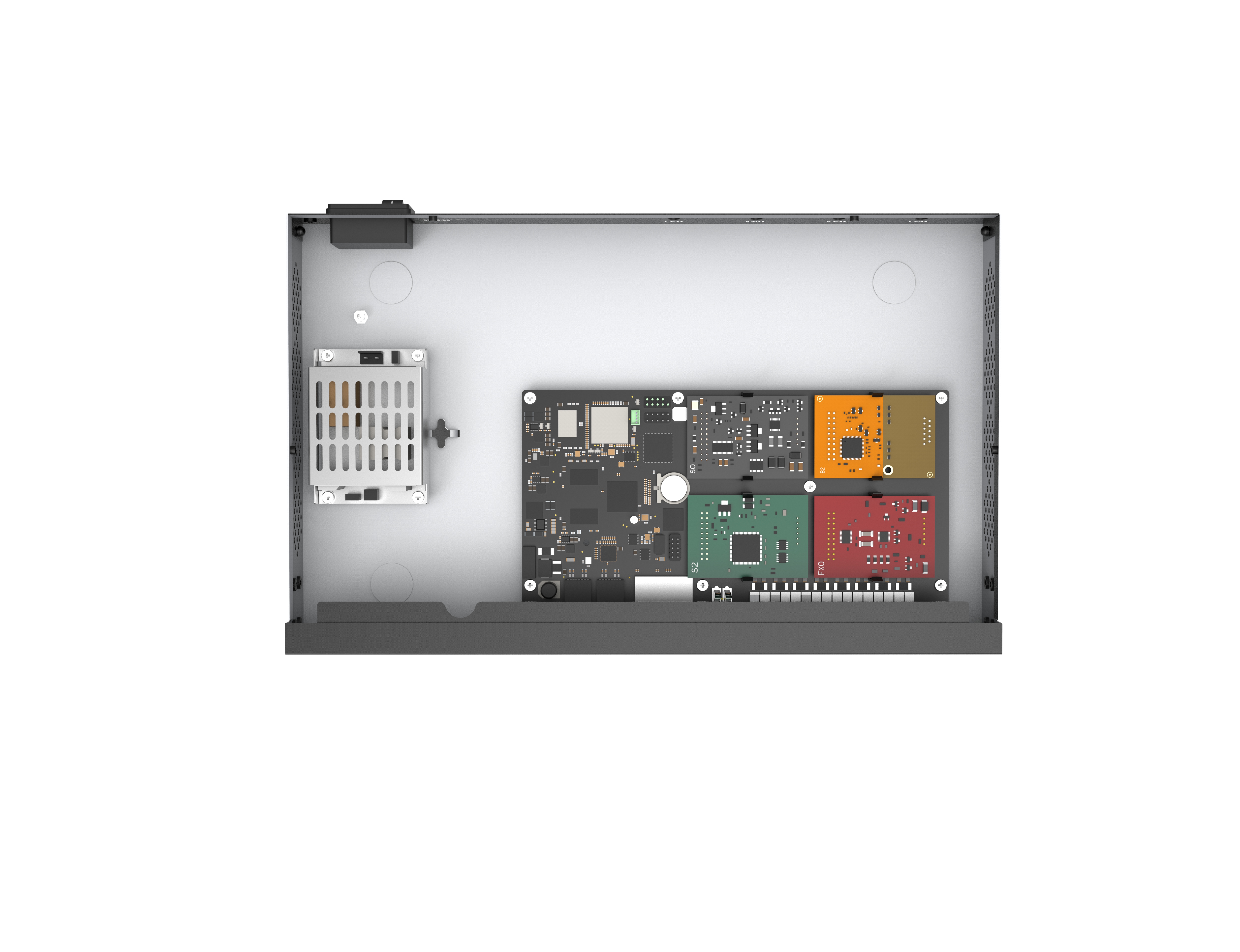 До 8 аналоговых портов (FXO/FXS), используя модули S2 (2 FXS), O2 (2 FXO) и SO (FXS и FXO)